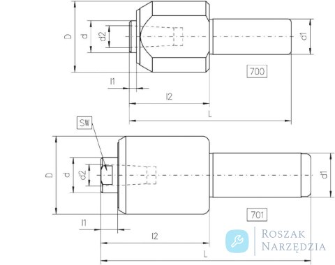 Kieł tokarski obrotowy 700, cylindryczny z wymiennymi końcówkami 20mm CONZELLA